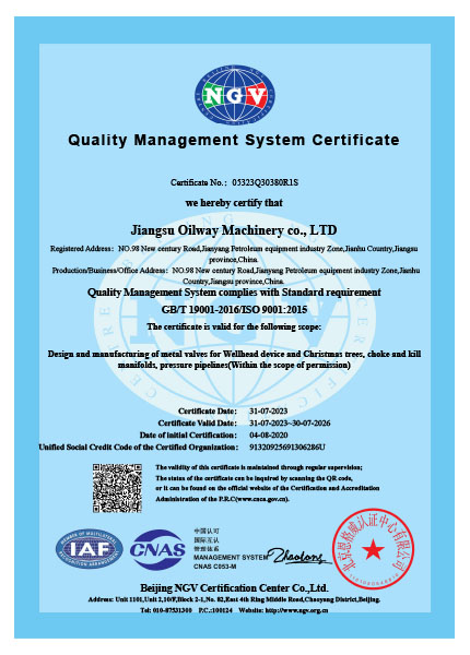 我們一直秉著質(zhì)量可靠、用戶至上的理念為客戶提供服務(wù),公司先后取得API6A,API6D,API16A,API16C,CE,TRCU (EAC),API6FA,ISO9001,ISO14001,ISO45001等國際認(rèn)證,使我們能更加規(guī)范化的按照標(biāo)準(zhǔn)及客戶要求,提供優(yōu)質(zhì)產(chǎn)品。